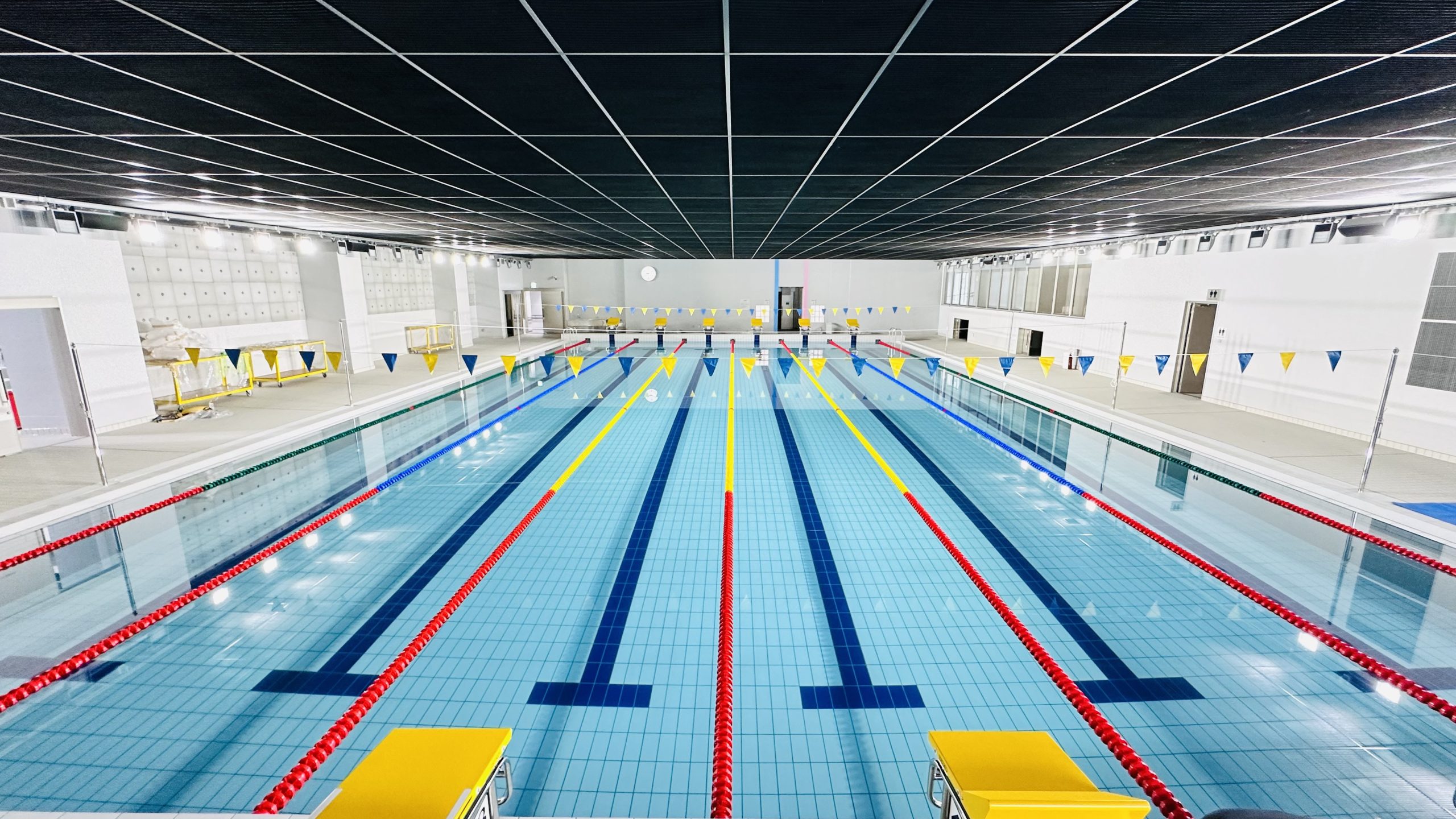 通年利用可能な50mプール、25mプール、飛び込み競技用プールの温水プール計3面を備えています。