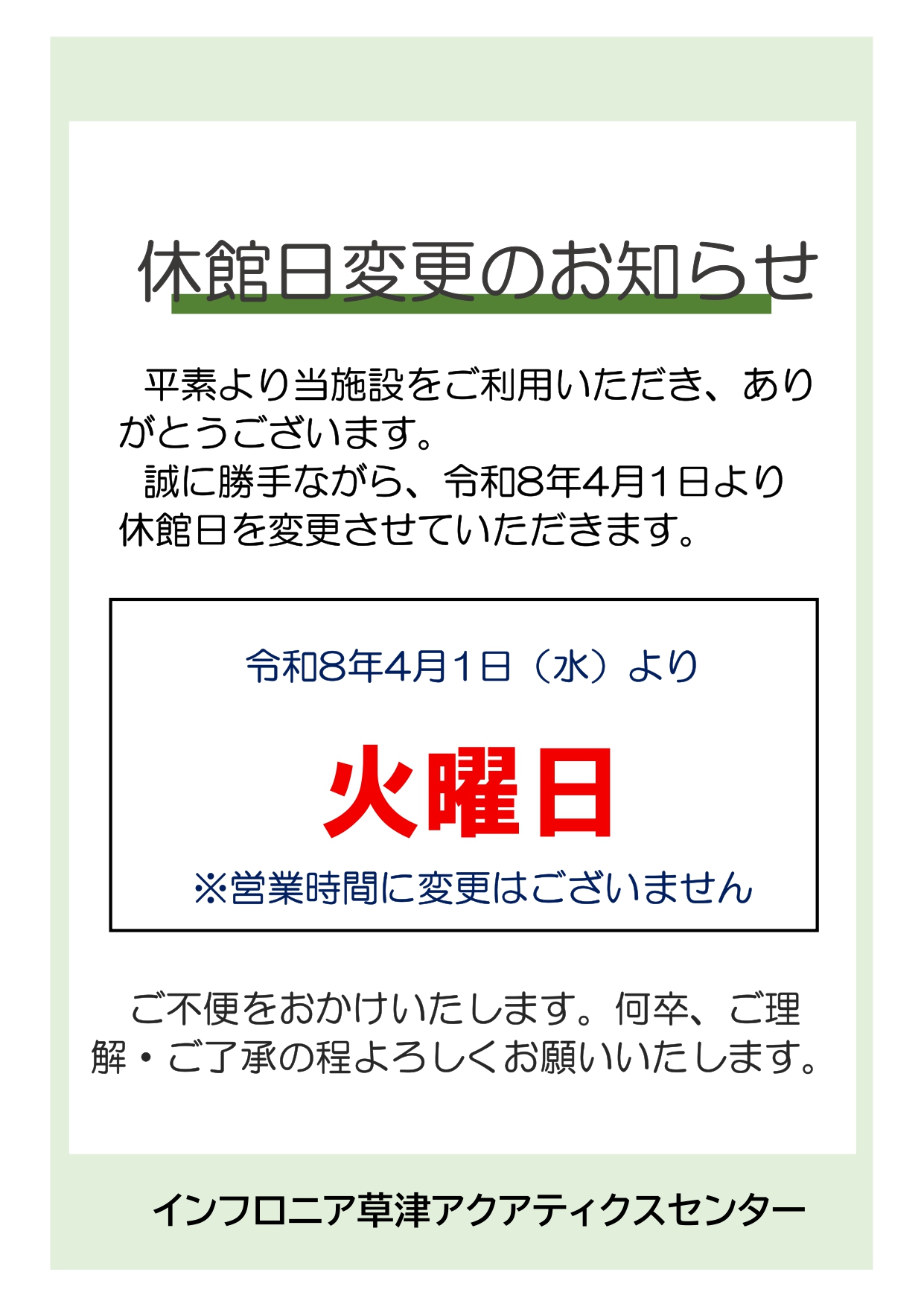 休館日変更のご案内(令和8年4月~)