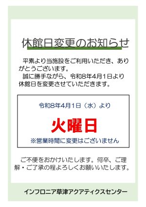 インフロニア草津アクアティクスセンターをご愛顧いただき誠にありがとうございます。