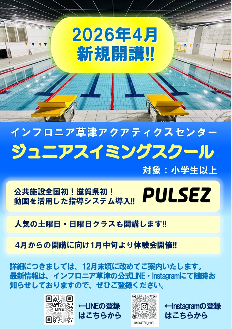 ジュニアスイミングスクールを開講いたします!